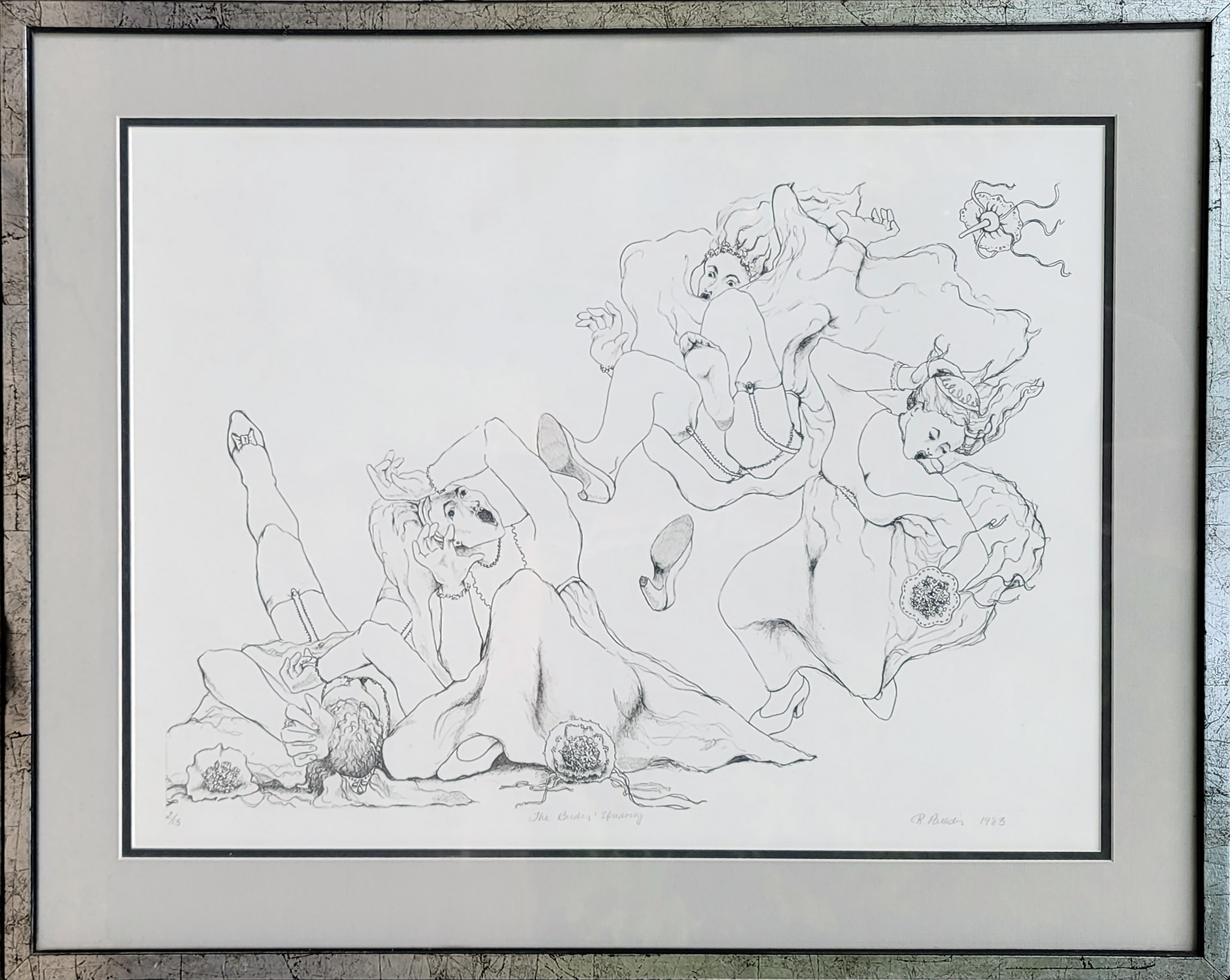 I met Laurel in 1995 and ultimately, the first weekend maybe, discovered the Rita Paradis print hanging over the head of her bed. It always intrigued me as I analyzed the wonderful graphic detail and the trajectories of the flying bodies. It was perhaps a harbinger of the soaring relationship about to ensue over the following 28 years.
